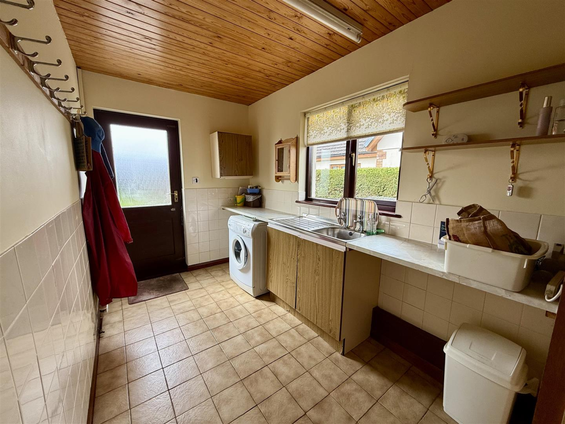 Utility Room - 3.88m x 1.97m (12'8" x 6'5") - Single drainer stainless steel sink unit. Fitted base cupboards. Plumbed for automatic washing machine. Fitted store cupboard. Tiled walls to dado height. Ceramic tiled floor. Pune panelled ceiling. Radiator.
