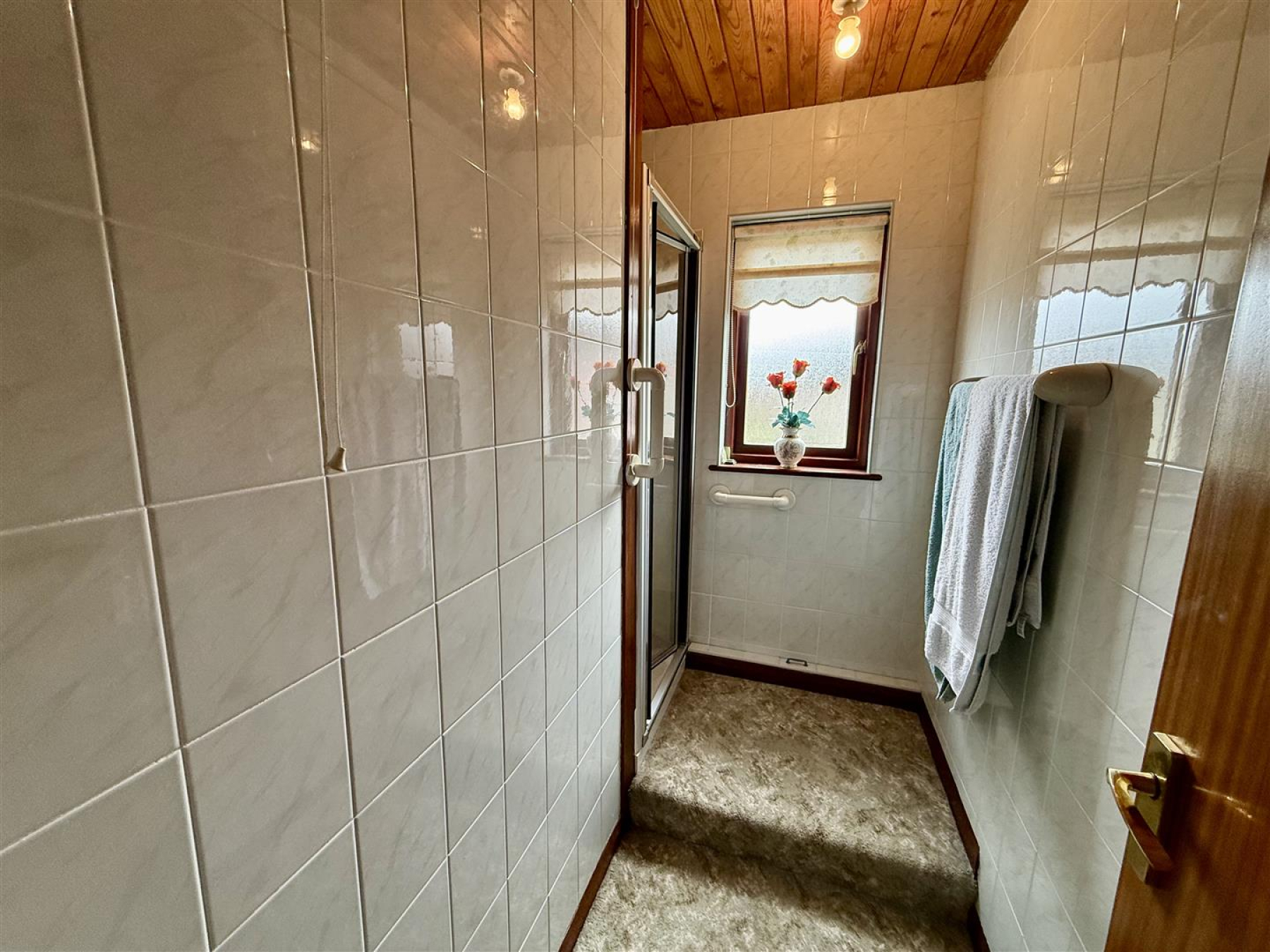 Shower Room - 2.19m x 0.90m (7'2" x 2'11") - Mira shower in tiled and glazed cubicle. Pine panelled ceiling. Fully tiled walls.