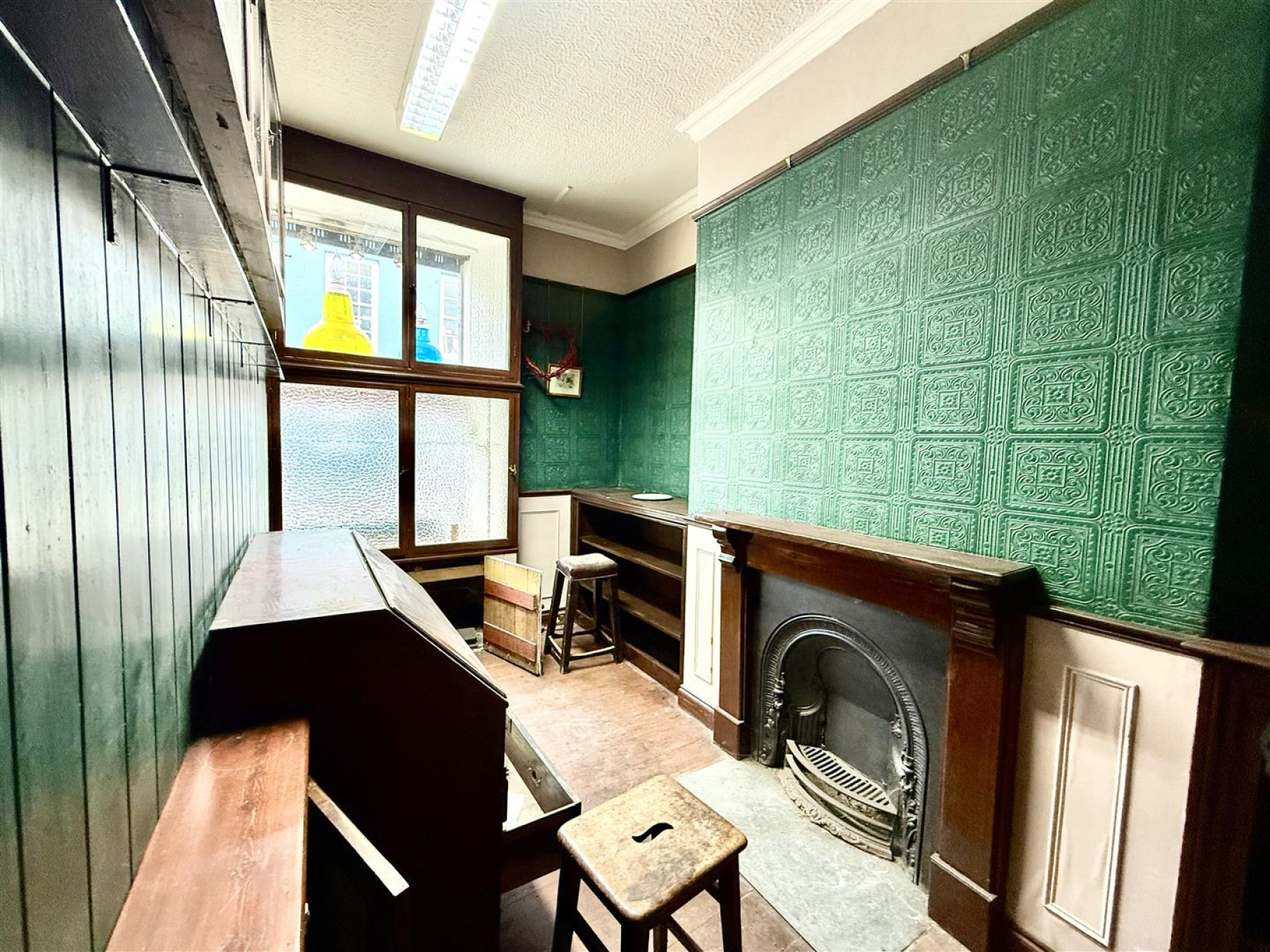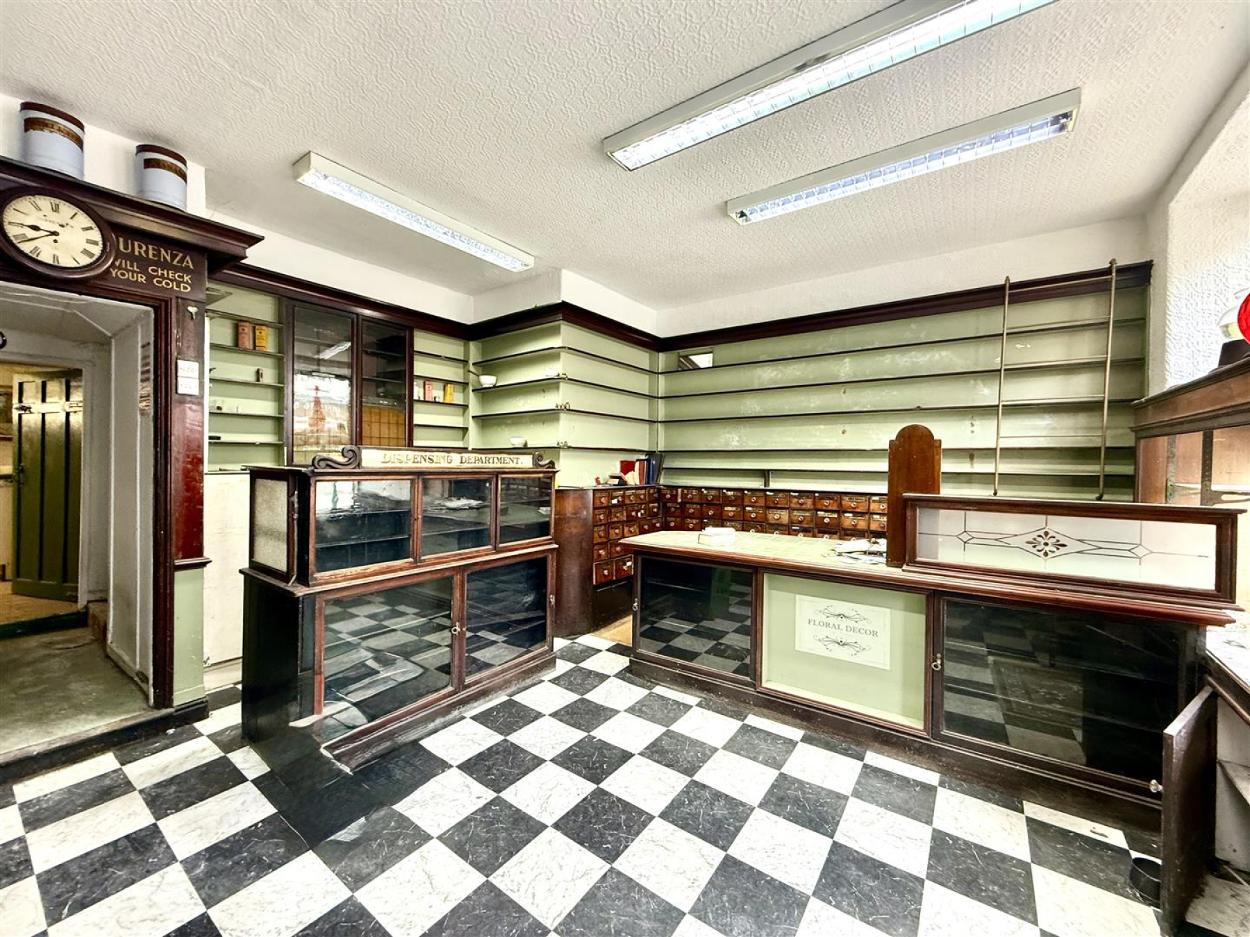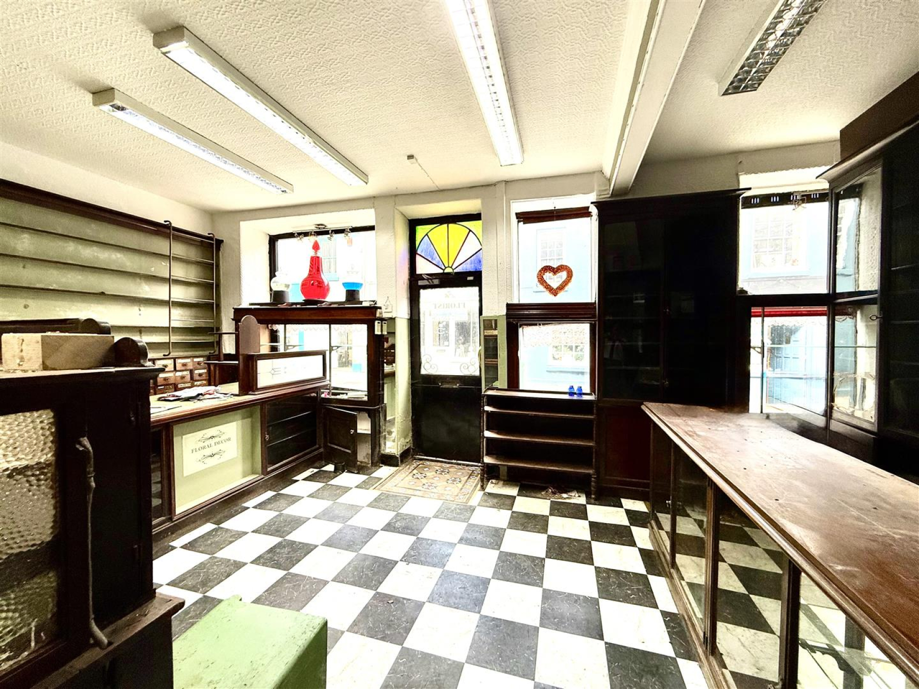 Retail Area - 6.49m x 4.86m - Superbly fitted with period display cupboards and counters. Enamel sink unit. 2 large picture windows to King Street