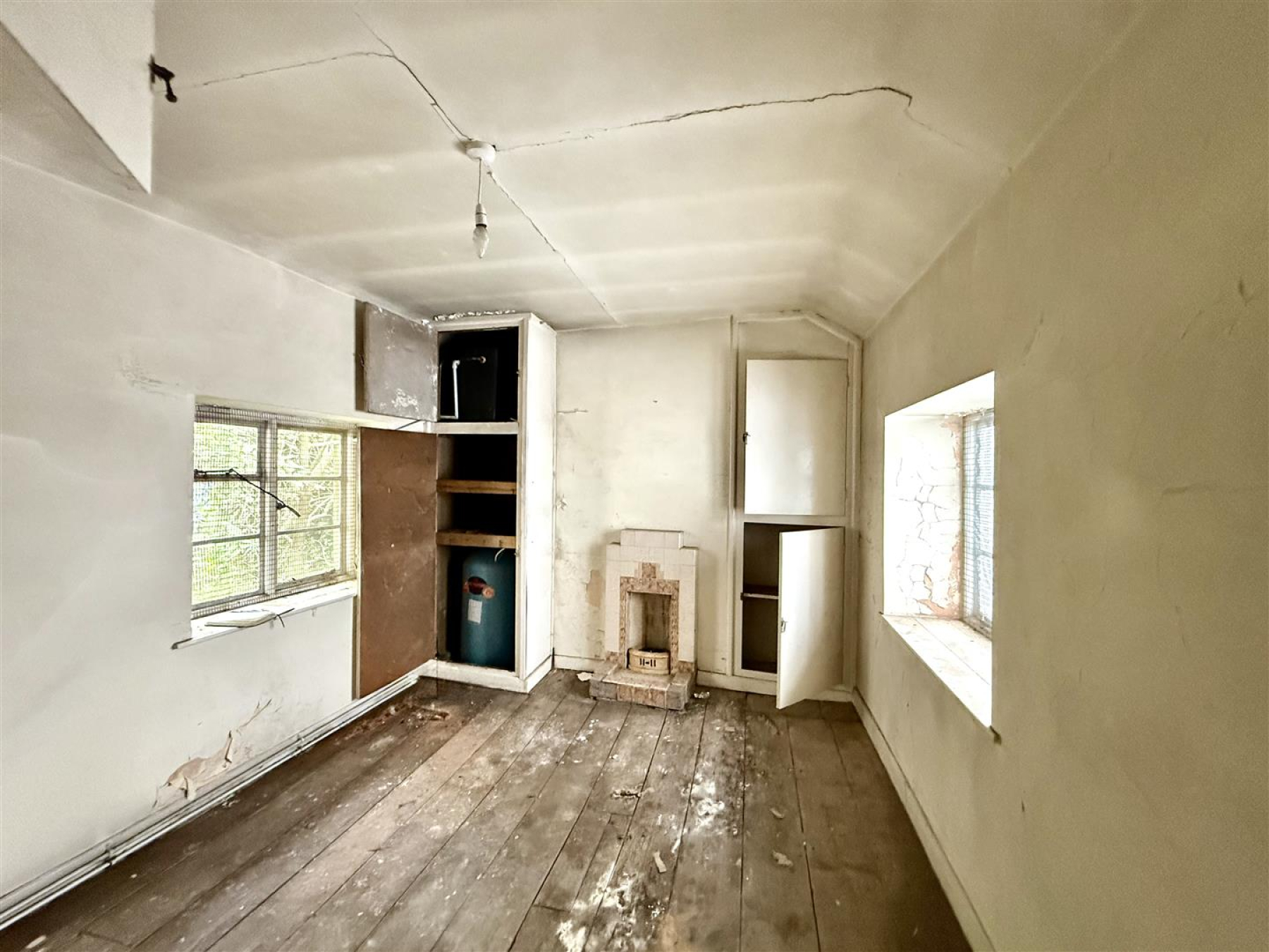 Bedroom - 4.31m x 2.83m - Tiled surround fireplace. Built in cupboard. Pine panelled floor.