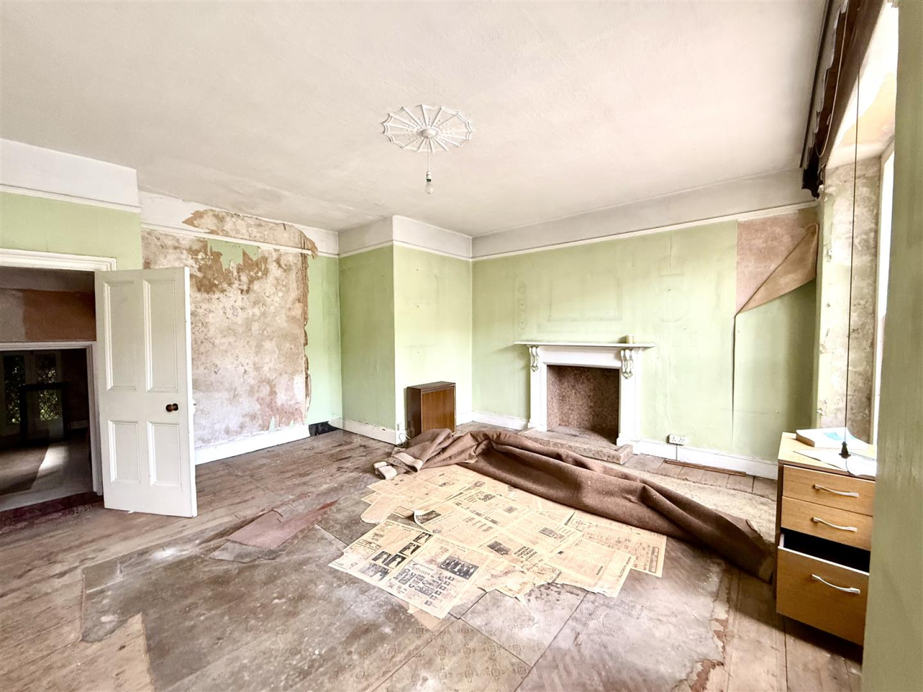 Living Room - 4.32m x 3.93m - Painted surround decorative fireplace with tiled inset. Electric panel heater.