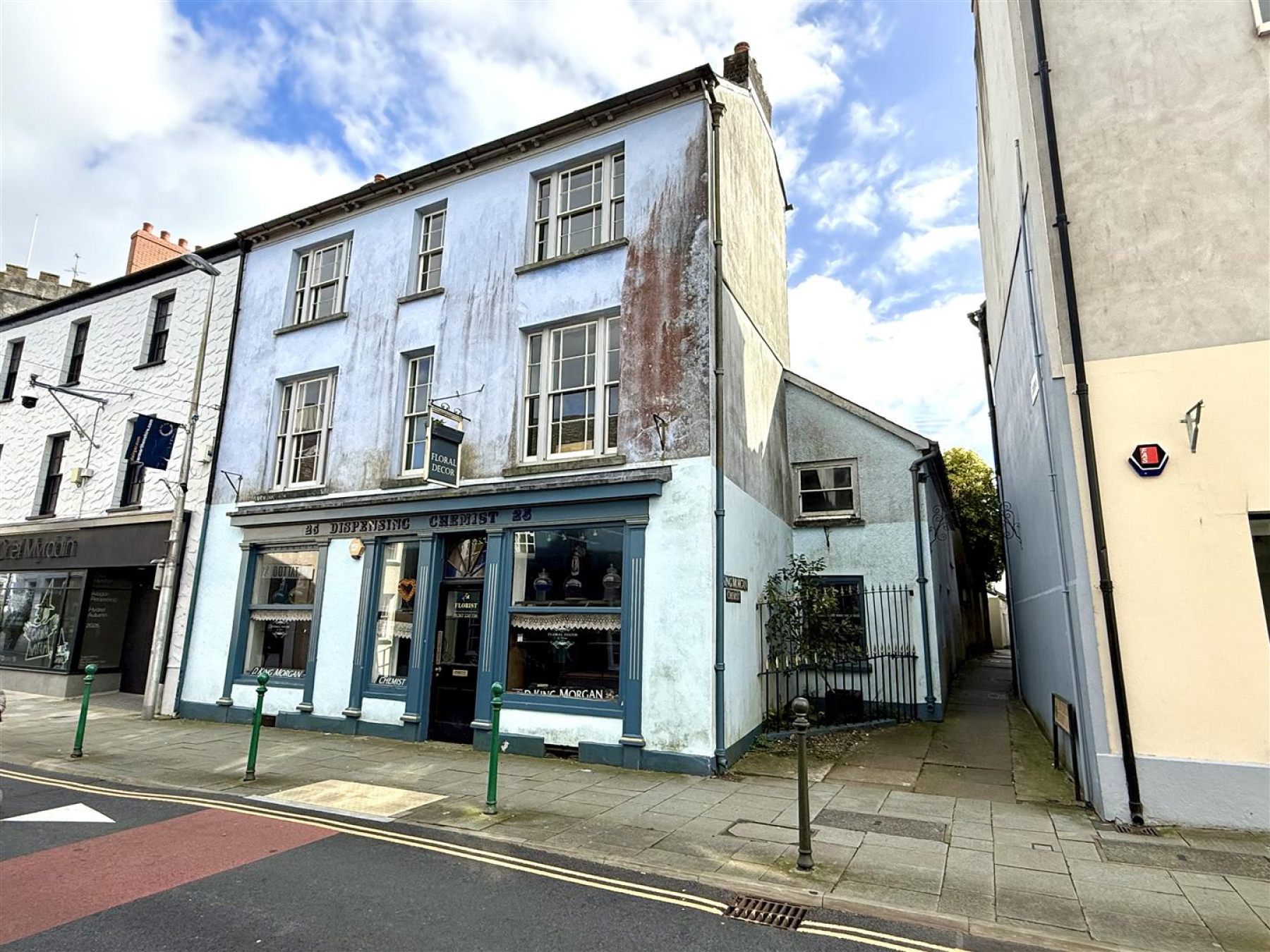 An impressive Period Grade II listed mixed use premises set in landmark retail location within the bustling County Market town of Carmarthen. The property comprises an impressive retail shop premises together with a spacious first and second floor offering potential living accommodation together adjoining self contained 2 bedroom cottage in need of refurbishment. The retail area has one large room with display window to King street a popular trading area of the town. The accommodative on the first and second floors provides Living Room; 2 Reception Rooms; 3 bedrooms and 2 cloakrooms. The building has a large basement and an enclosed courtyard to the rear. Viewing highly recommended