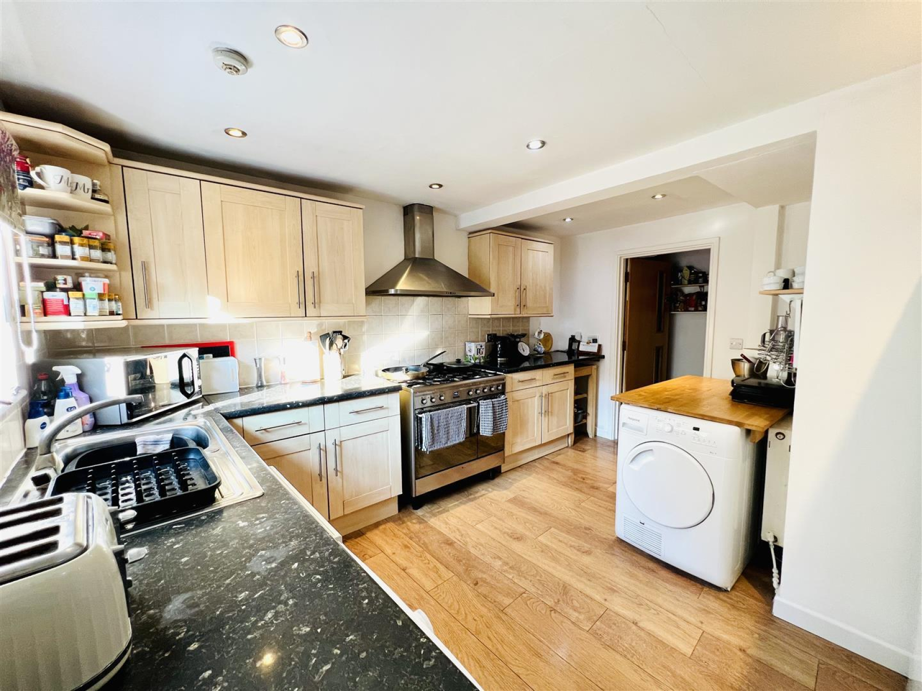 Kitchen / Brekfast Room - 5.18 x 3.5 - Single drainer stainless sink unit with sink unit chrome mixer tap. Plumbed for automatic washing machine and dishwasher. Fitted Smeg dual fuel gas range with 5 burner hob and conventional and fan ovens. Fitted range of base and wall units. Fitted granite work surface with tile surround. Wood effect floor. Hotpoint fridge and freezer. Integral tumble dryer. Ceiling down lighters. Radiator.